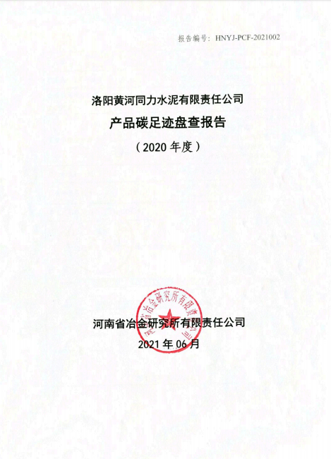 洛陽(yáng)黃河同力水泥有限責任公司產(chǎn)品碳足跡盤(pán)查報告(2020年度)